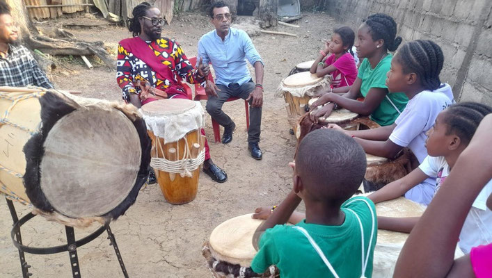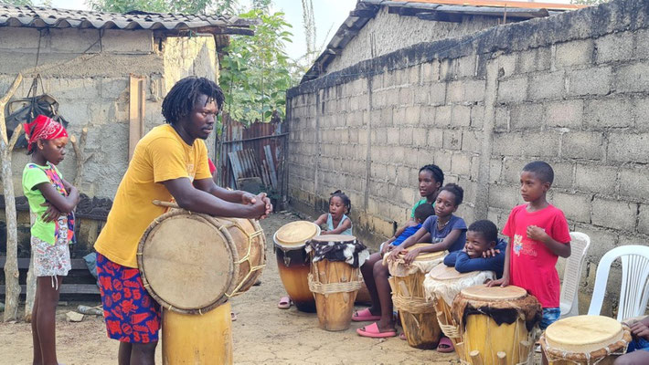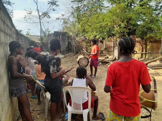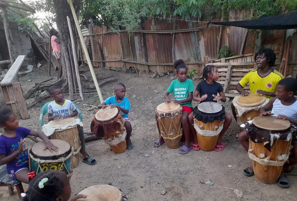 Dabei wird nicht nur die Kunst des Trommelspielens und anderer Instrumente vermittelt, sondern es werden auch die Lieder gesungen, die in Palenque eine lange Tradition haben. Das